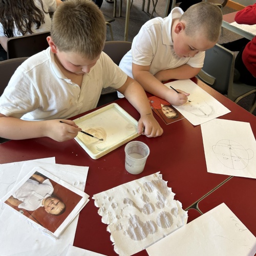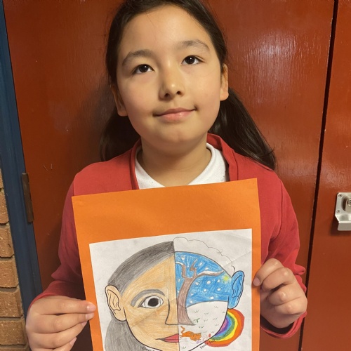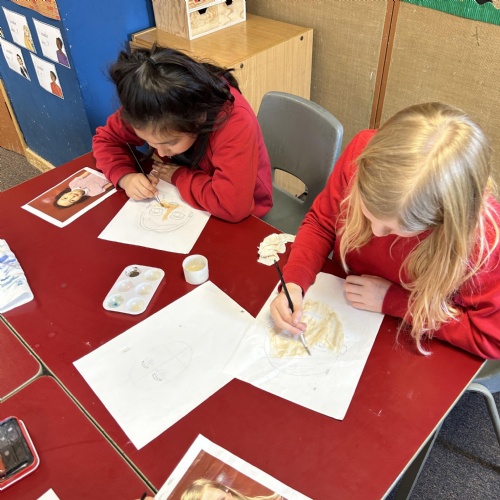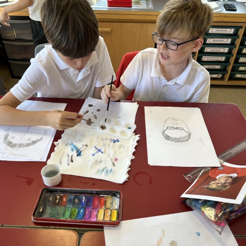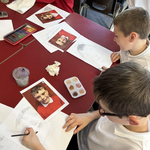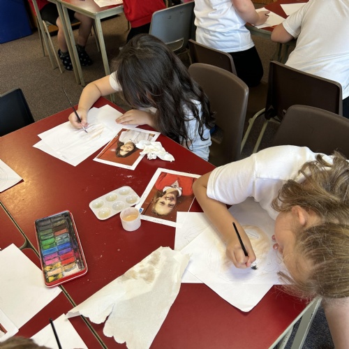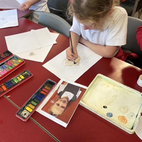 After practicing our drawing skills and experimenting with different colour mixing to get just the right skin tone we were ready to paint our final self portraits.