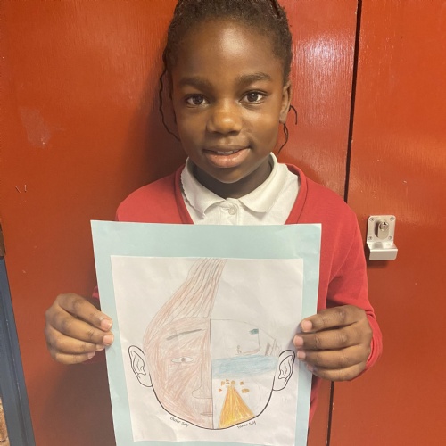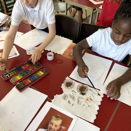 Our first cold task, learning portrait techniques using lines and our final piece using watercolours.