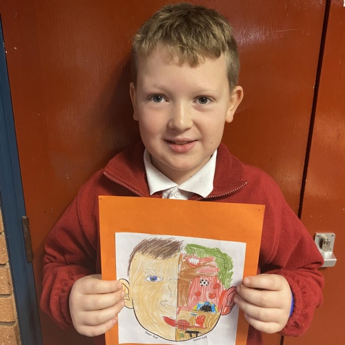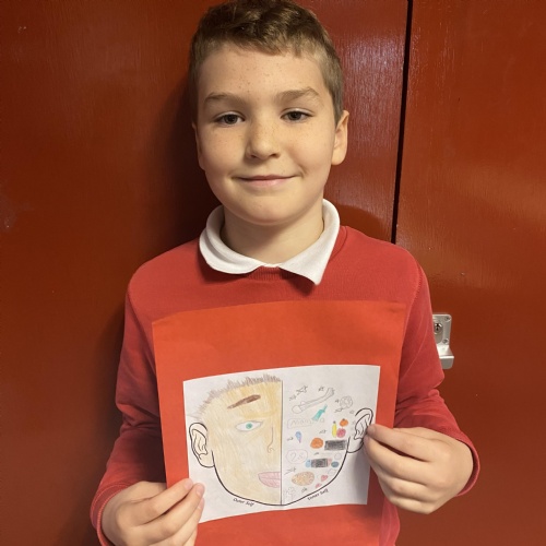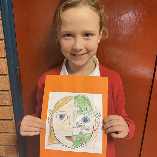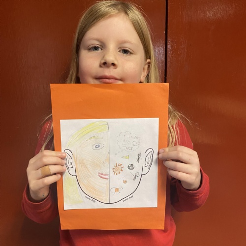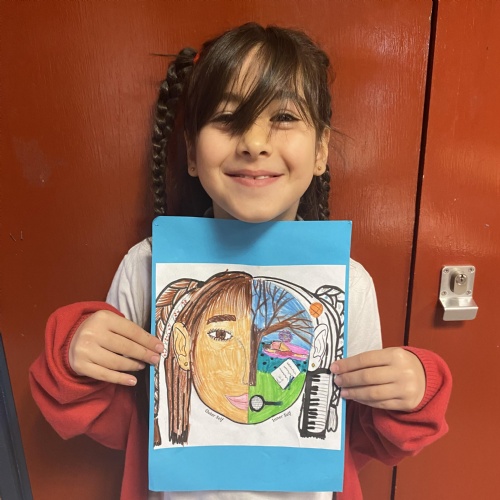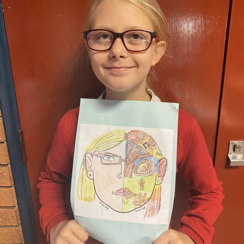 We created these fantastic half and half portraits of what we look like on the outside and all the things that make us us on the inside.