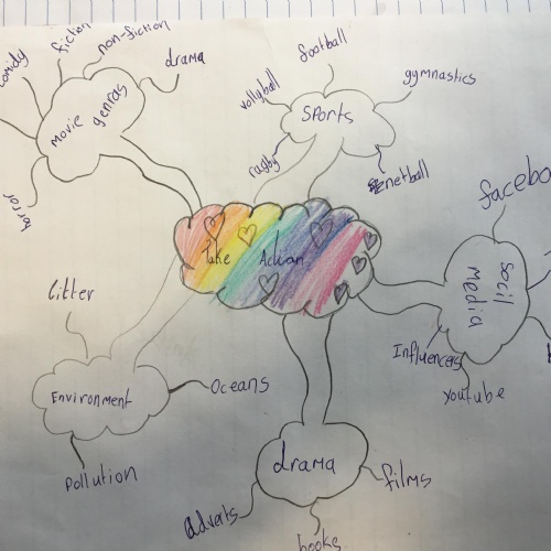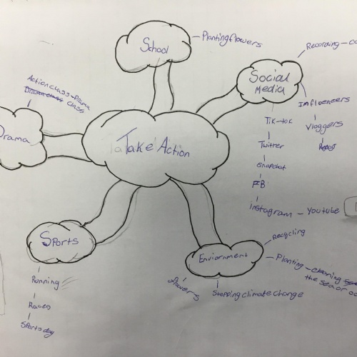 We began the term with thinking about what Take Action meant to us creating mind maps to show our thoughts.