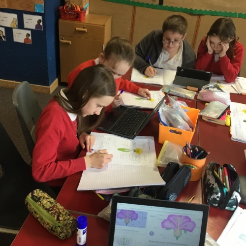 As part of British Science Week we decided to link our learning to our topic. We wanted to find out more about plants, how they grow and the environments/habitats they grow in. We began by doing some research and learning about the different parts of a flower, why each part is so important and the scientific names for them.