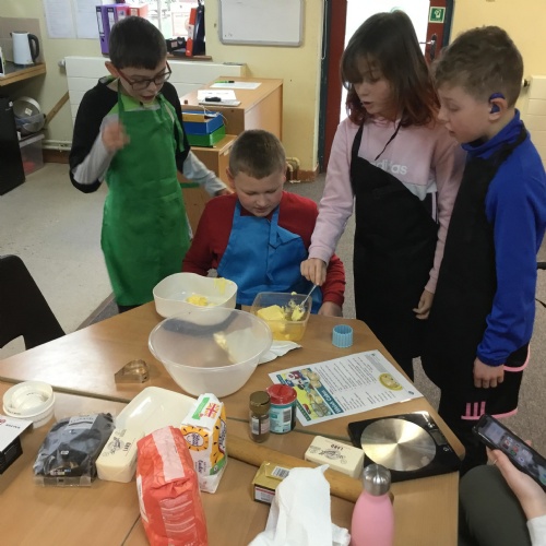We have had a Welsh themed few day this week. The class have been baking traditional and chocolate chip Welsh cakes, following the recipe and instructions as a team with only a little help needed from Miss Price.