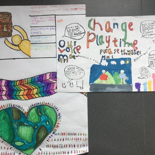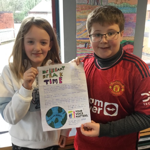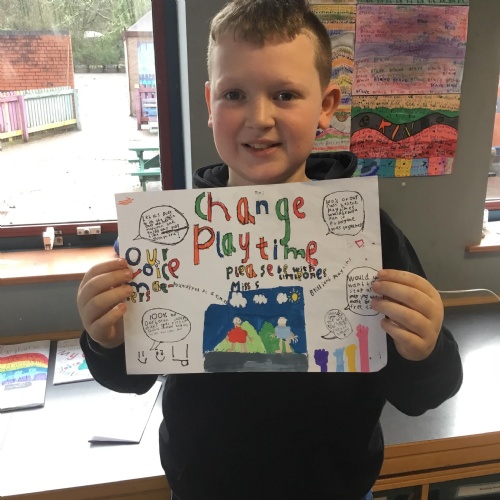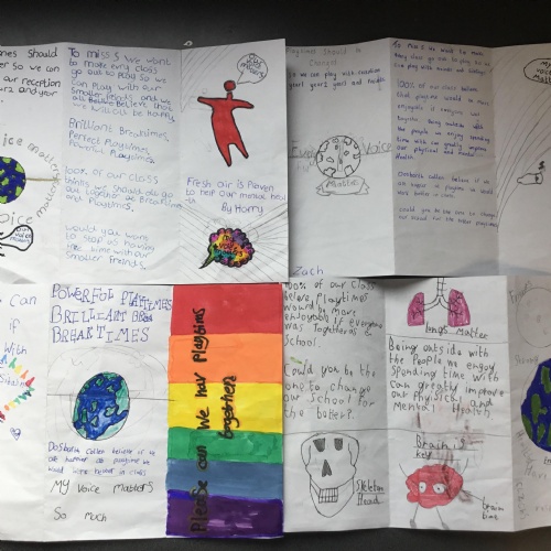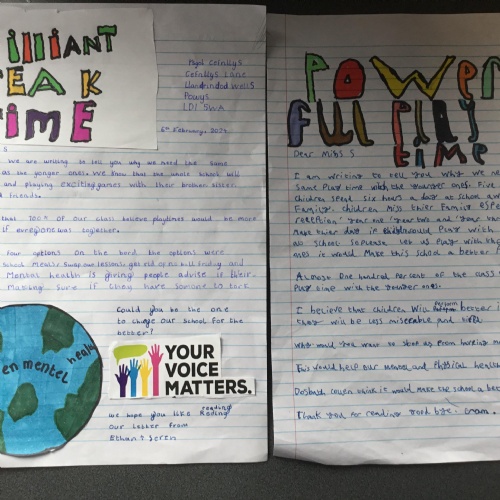 The class have been working on some persuasive ideas to put to Miss S. in the hope that the whole school can have some of their playtimes together. They came up with some very well thought out arguments and used lots of persuasive devices. We hope we have done enough to persuade Miss S. to consider our proposal.