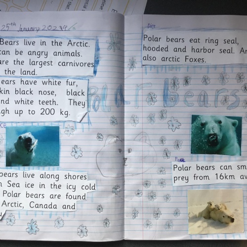Created on an animal of their choice. We used post it notes to plan and research our reports and then produced our final drafts after editing and improving our work.