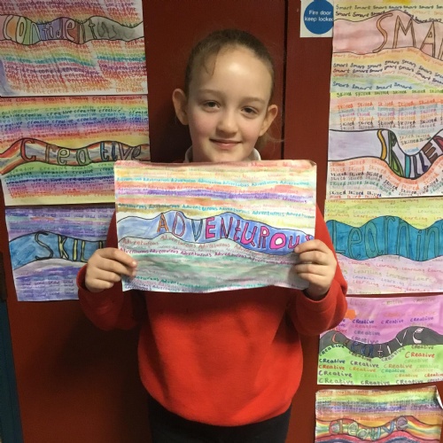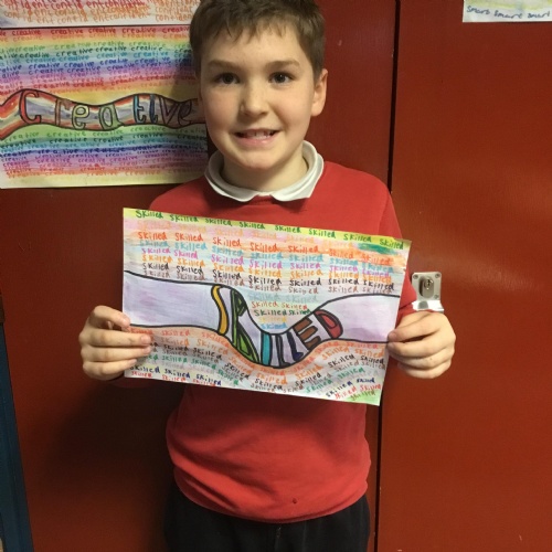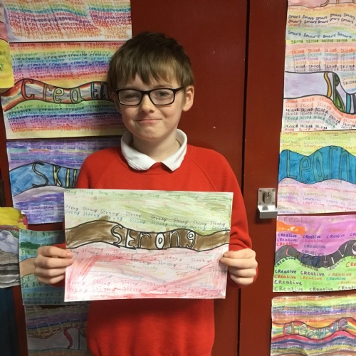 Dosbarth Collen have discussed what goals they would like to set themselves in 2024. From this they had to narrow it down to one word they would like to be! They created these fantastic pieces of artwork using their own individual ideas. This has also fitted in very well with our discussions about Children's Mental Health Week and how important it is for them to feel good about themselves.
