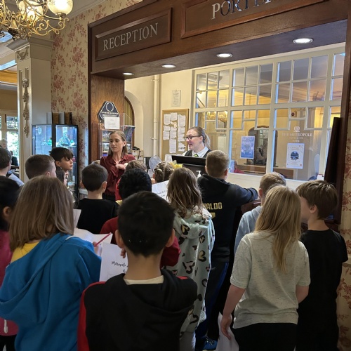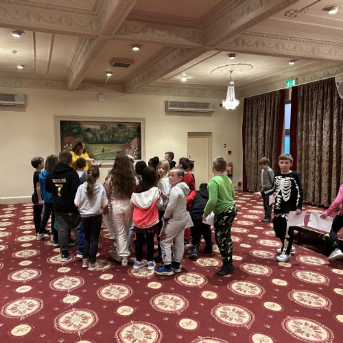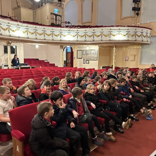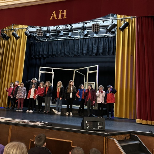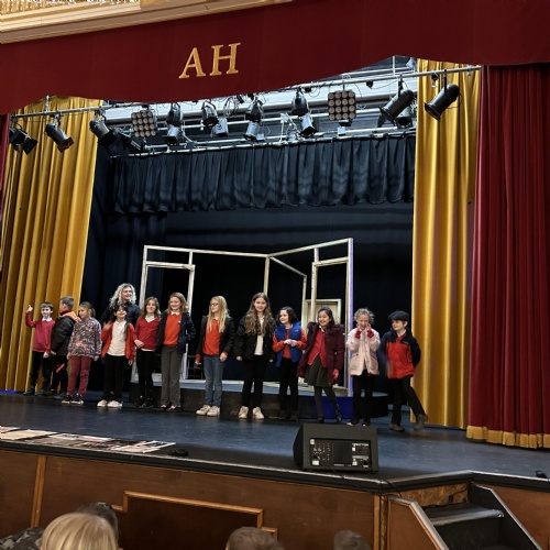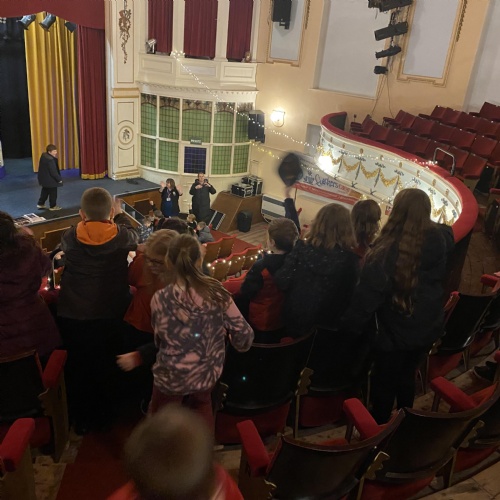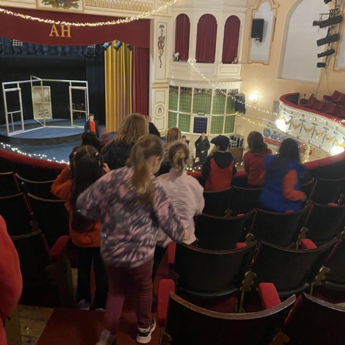 John and Sue welcomed us to The Albert Hall. We got to sit in the auditorium where we found out there are 364 seats in total. We got to go up onto the stage and some of us performed! We also had a tour, backstage, through the dressing rooms, over the Rat Run, the Lesser Hall and we went up onto the balcony. We all got up on the stage to sing our school song.