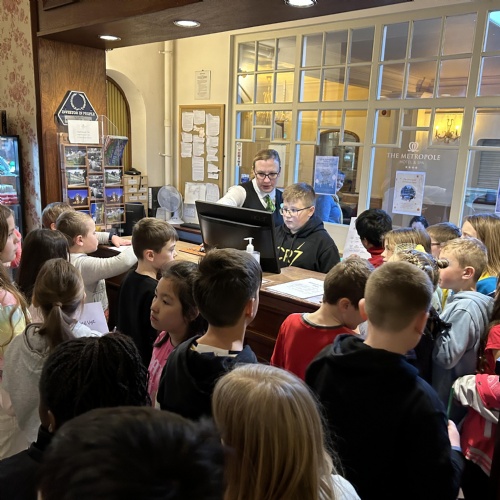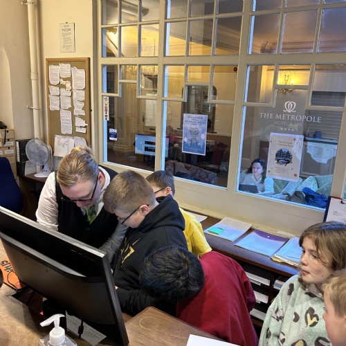 We visited The Metropole Hotel and were shown around by Lauren and Sarah. Catherine and Sam also told us lots of information and interesting facts about the Hotel. The hotel was built 150 years ago and has had 3 names. It was first known as The Bridge Hotel, the owner Elizabeth Miles changed the name to The Metropole as a closing hotel was getting rid of all their cutlery and napkins which had the letter M on.