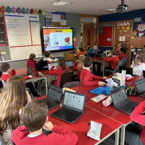 We took part in a live lesson to create a postcard based on the theme of Remembrance. We used Adobe Express on Hwb and learnt how to use many different tools and techniques.
