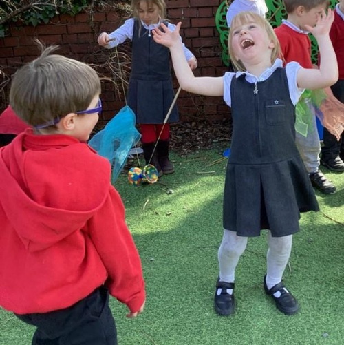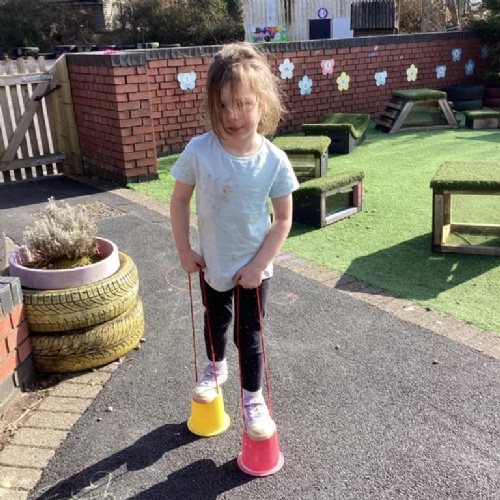 As the weather has improved we have been enjoying our outdoor classroom. We have been exploring capacity in the sandpit with different size buckets, performing dances to music on our stage area, and developing our physical literacy in our circus skills tent.