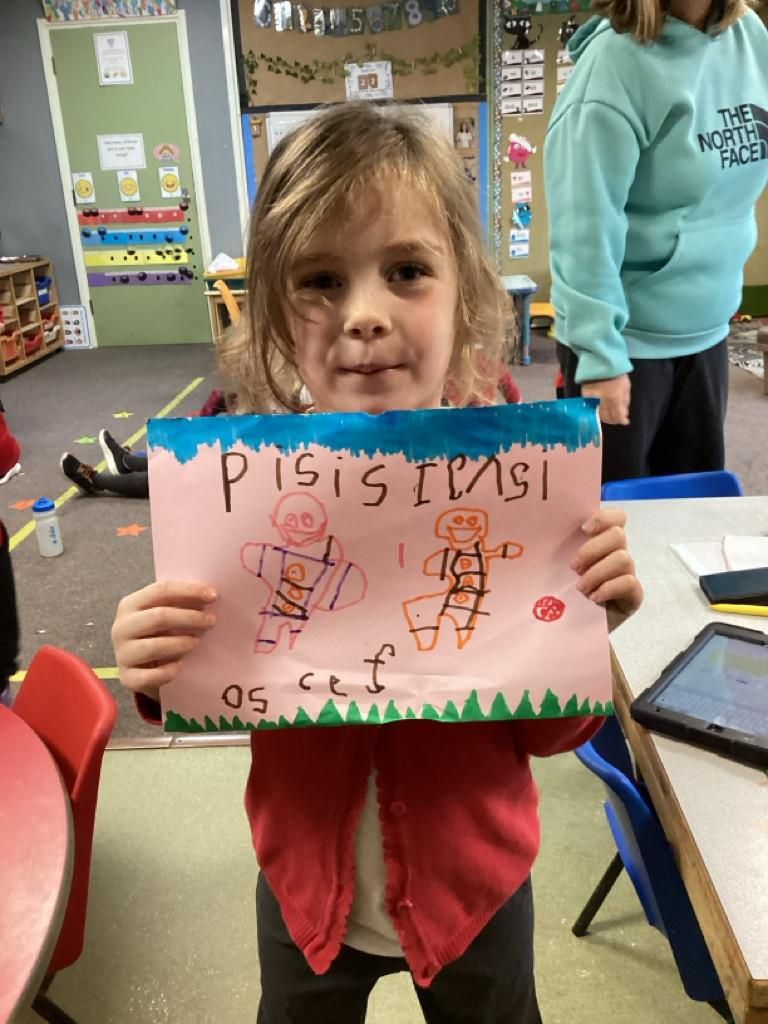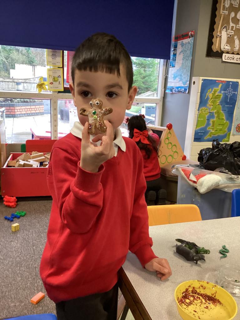We used Pie Corbett's storytelling actions to retell the story. We baked Gingerbread Men, but unfortunately one ran away! We made posters and left him notes in the hope that he would come back. We made him a house and lots of lovely friends which we used to decorate out class christmas tree. Eventually he came back, and we were so happy to see him!