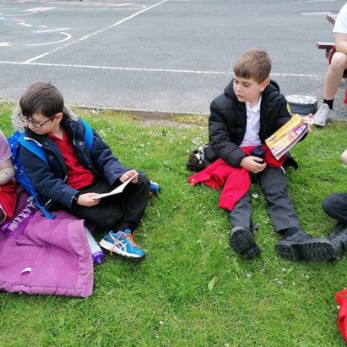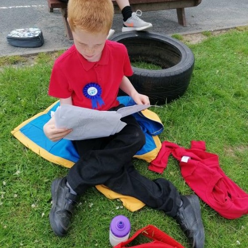 To keep our minds healthy we took our daily reading time outside, the children decided on how they wanted to read, some read to each other, some read to themselves we even had someone sharing a comic book that they had written themselves!