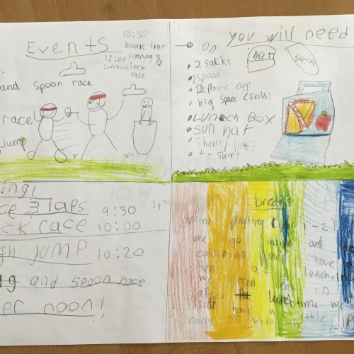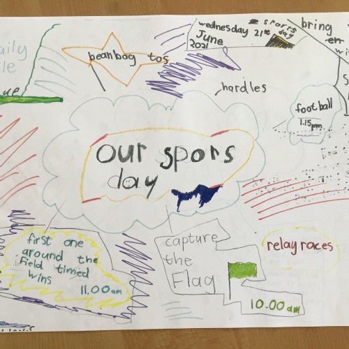 Here are just some of the wonderful ideas you have come up with. As the weeks go on I am sure you will add to our planning wall. As well as planning your own Sports Day, you can also look forward to taking part in some extra sports and health ad well-being sessions, such as rugby, morning dances, our daily 10 minutes of moving challenge and even a little visit to the new community garden where we are hoping to pick and even taste some of the produce. All exciting and worthwhile experiences towards learning more about being Healthy, Happy and Sporty!