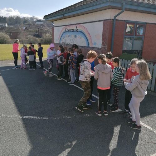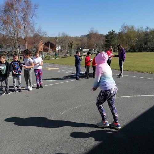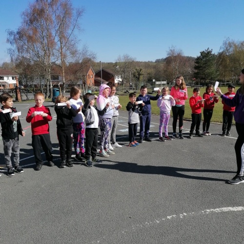 We have started our first week by doing a 10 minute a day challenge to keep our bodies moving by running, jogging or walking. Dosbarth Ffawydden have been very keen to keep this up everyday and are hoping to see improvements in their fitness by recording their results daily.