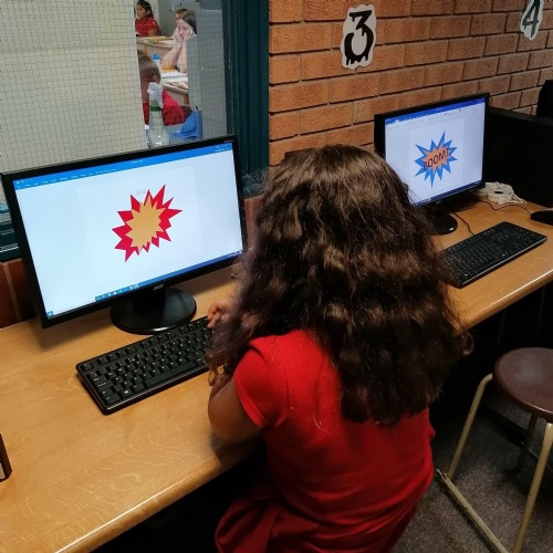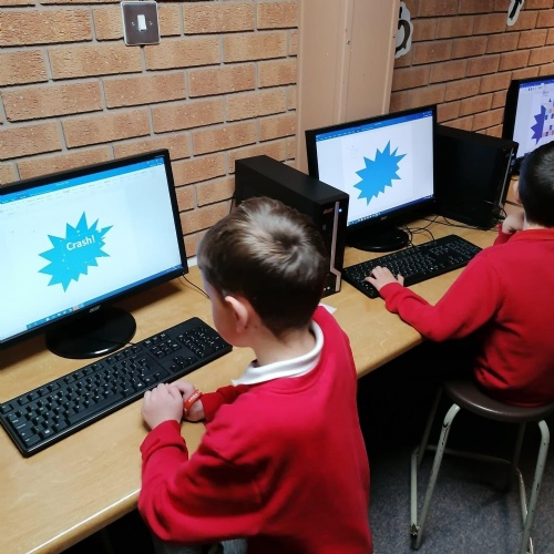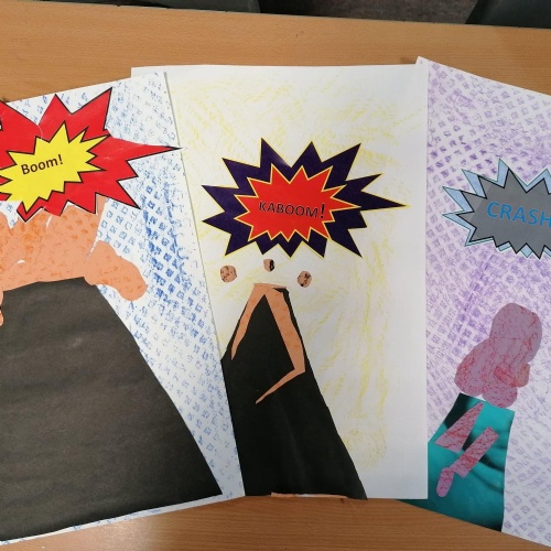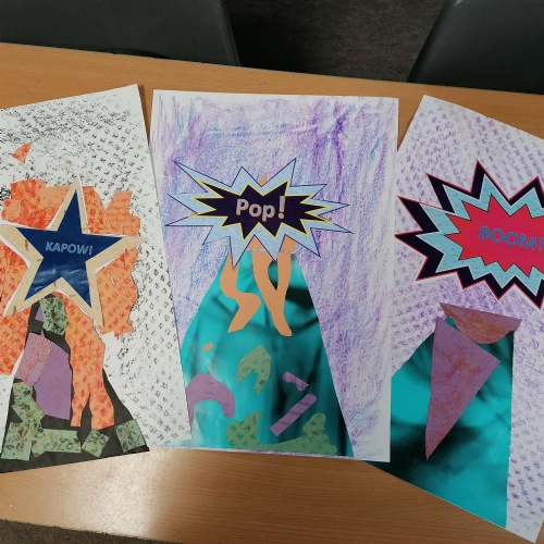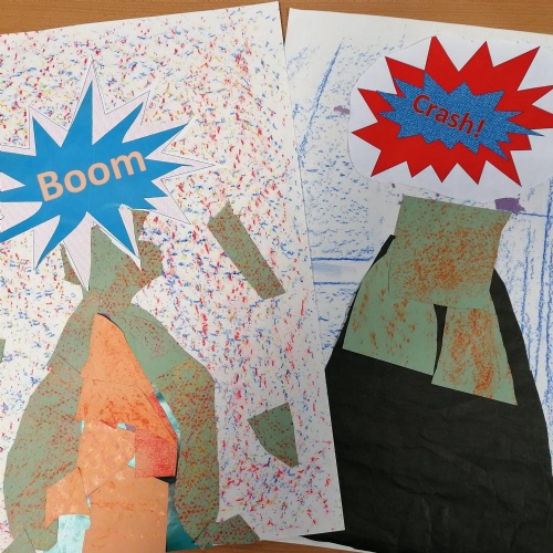 We created our own pop art, onomatopoeia vocabulary,using Word in our ICT session.