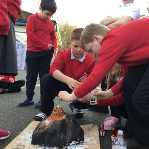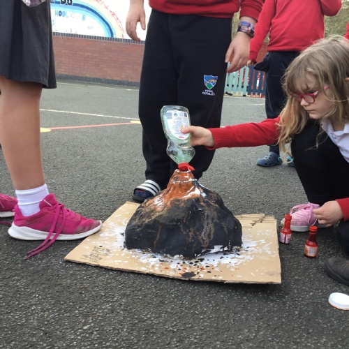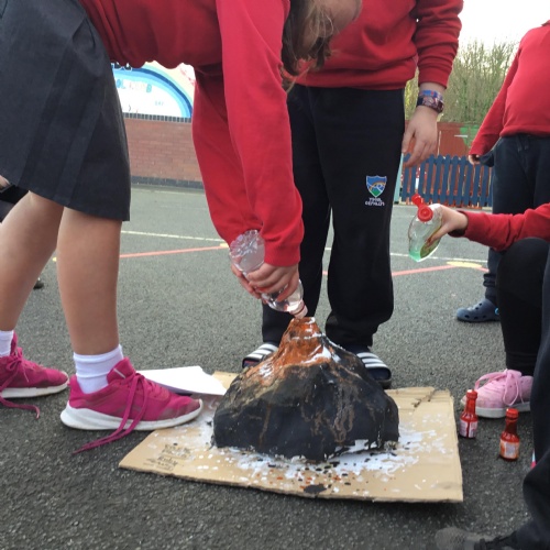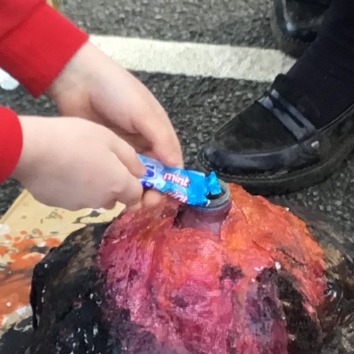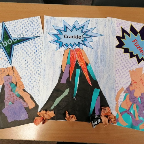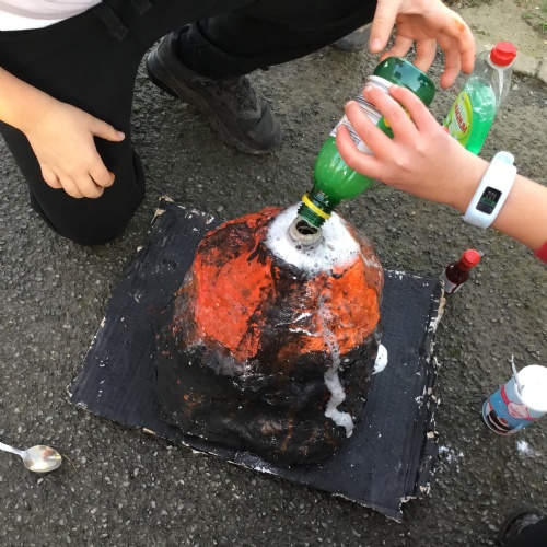 As part of our Expressive Arts MILE this half term, Dosbarth Ffawydden had to create a piece of volcano art work, using the equipment given. These are our "Volcanoes in a bag."