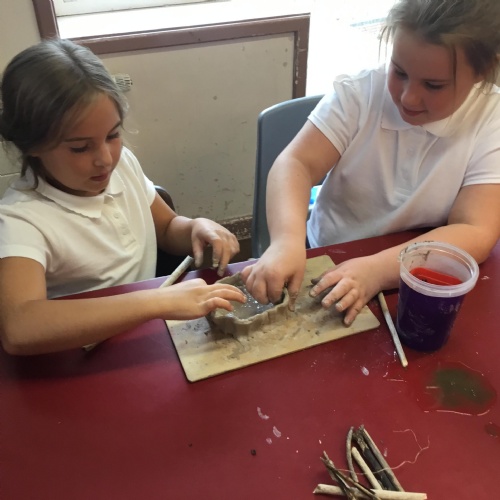 We had a go at making Celtic roundhouses, we found out that they used mud, clay, poo and straw! we enjoyed making them but it was very messy!