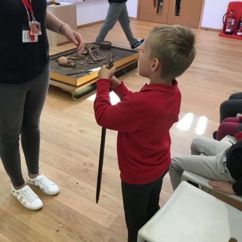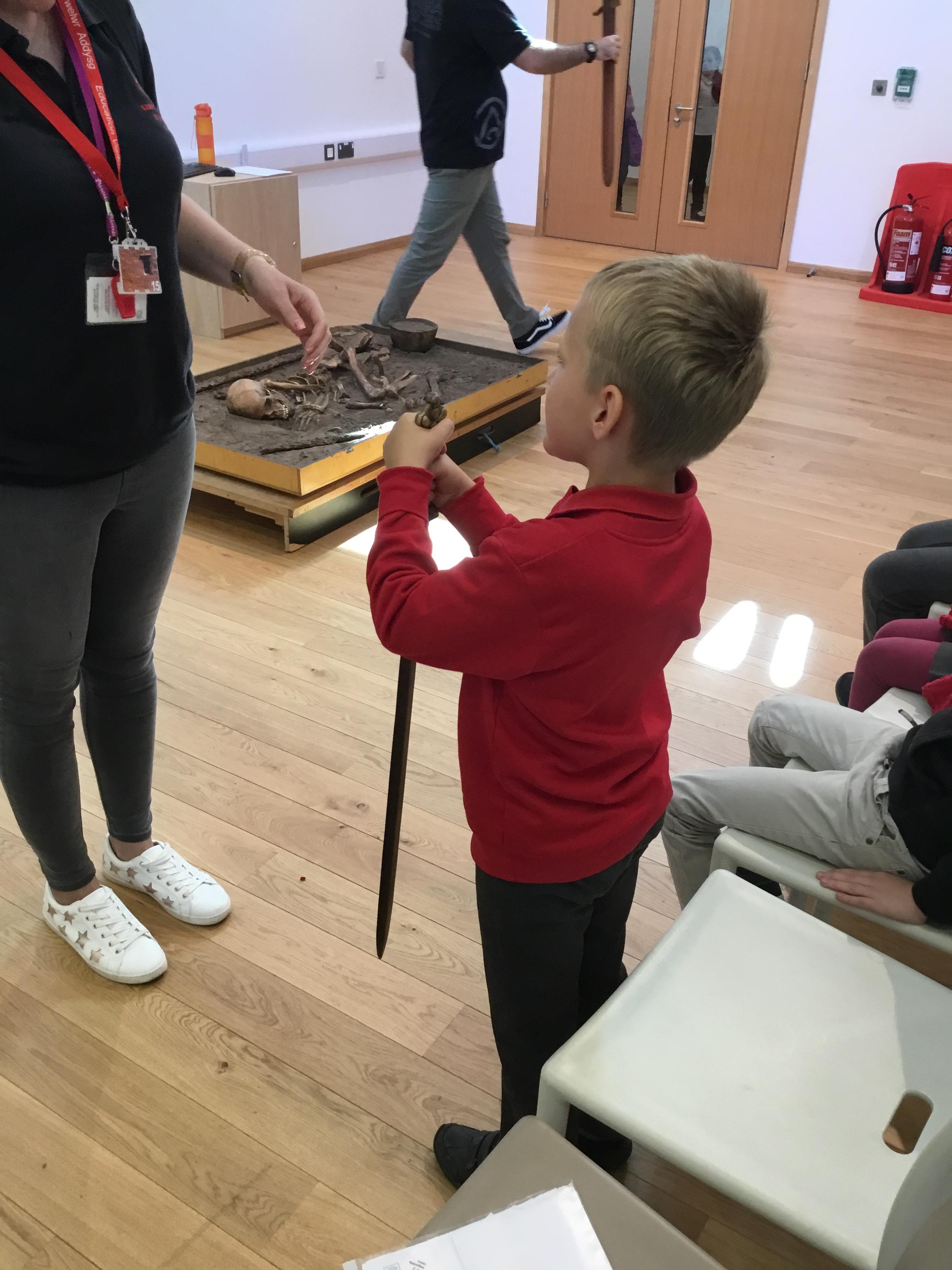 We looked at a Warrior graveyard and found out a lot of information about the remains in the grave and what they symbolised for the Deceased Celtic Warrior! We also had a look around a Iron age farmstead and a roundhouse, the children were brilliant at answering and asking relevant questions about the Celts. We had a go at weaving it was a lot harder than it looked. Mrs Prince and Mrs Hards were so impressed Dosbarth Collen that we had time for a go in the park be getting on the bus home!! Busy but amazing day.