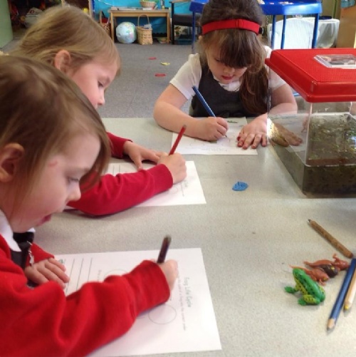 This term our topic is Spring. We have been observing our frogspawn and learning about life cycles. We have planted sunflowers and are learning what a plant needs to grow. We have also been working hard in Read Write Inc and learning about shape, money and adding one more in maths.